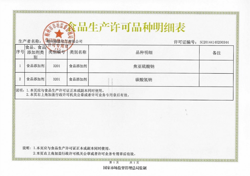 食品生產(chǎn)許可證—明細(xì)表